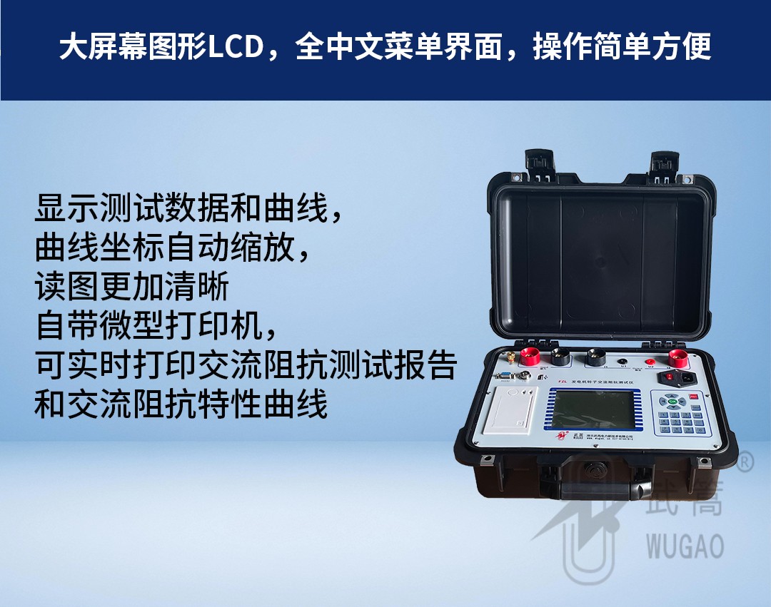 全自动采集、测量、显示、存储、打印所有测量参数和阻抗特性曲线(电压、 电流、阻抗、功率、频率、设备编号、时间等)。