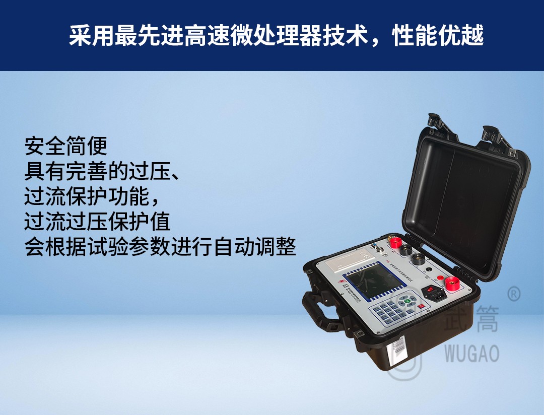 4、具有完善的过压、过流保护功能,其中过流过压保护值是根据试验参数的设置情况自动调整,既简便又能确保被试设备的安全。